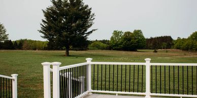 Historic cement bar with sliding doors on each end to outdoor attached decks. To the west is a large deck that overlooks the rolling hills of the property and a smaller more intimate deck on the opposite side facing the front of the property.